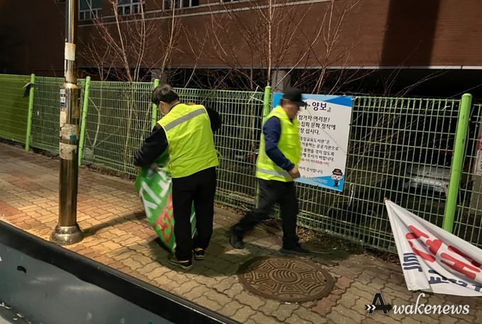 어웨이크뉴스 오경하 기자 | 수원시 장안구는 지난 23일 학교 주변과 불법 광고 상습 게시지역을 중심으로 불법 광고물 야간 단속을 진행했다.