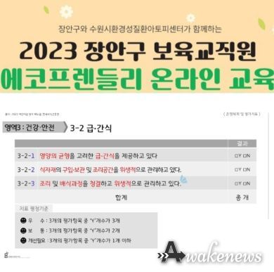 어웨이크뉴스 오경하 기자 | 수원시 장안구가 관내 어린이집 원장과 보육 교직원을 대상으로 ‘Eco-friendly 보육교직원 교육’을 진행한다.