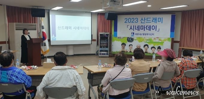 어웨이크뉴스 오경하 기자 | 지난 30일, 수원특례시 매탄4동 지역사회보장협의체는 관내 저소득 가정 어르신 10명을 매탄4동 행정복지센터로 초청해 2023년 제1회 ‘산드래미 시네마 데이’를 개최했다.