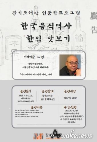 어웨이크뉴스 오경하 기자 | 김포시 장기도서관은 오는 7월 4일부터 25일까지 매주 화요일 오전 10시 인문학프로그램 ‘한국음식역사 한입 맛보기’를 운영한다.