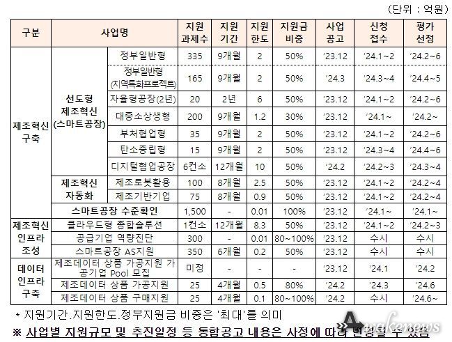 금번 통합공고는 지난 9월 발표한 지능형(스마트) 제조혁신 정책의 청사진을 제시하는 「신(新) 디지털 제조혁신 추진전략」을 차질 없이 이행하기 위해 2024년 지능형(스마트)제조혁신 지원사업의 내용을 담고 있다.