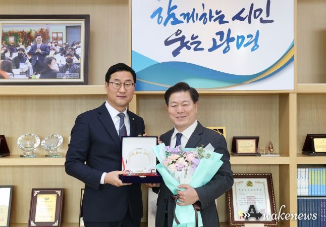 어웨이크뉴스 오경하 기자 | 박승원 광명시장은 28일 (사)광명시소상공인협회로부터 2024년 지역화폐 예산 증액 확보에 대한 고마움의 뜻을 담은 감사패를 받았다.