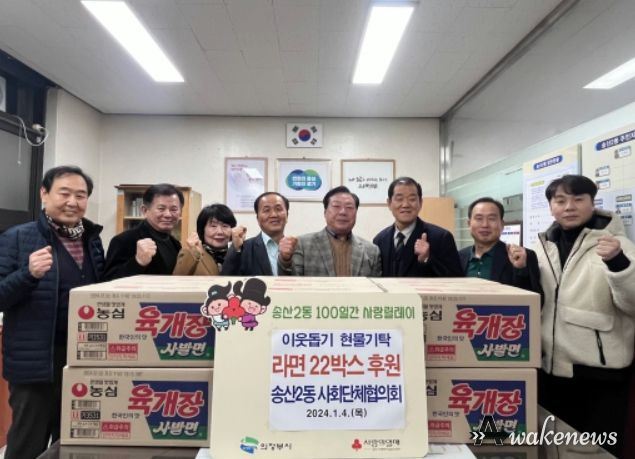 어웨이크뉴스 오경하 기자 | 의정부시 송산2동주민센터는 1월 4일 송산2동 사회단체협의회가 저소득층에 전달해 달라며 위원들과 함께 컵라면 22상자(528개)를 기부했다고 밝혔다.
