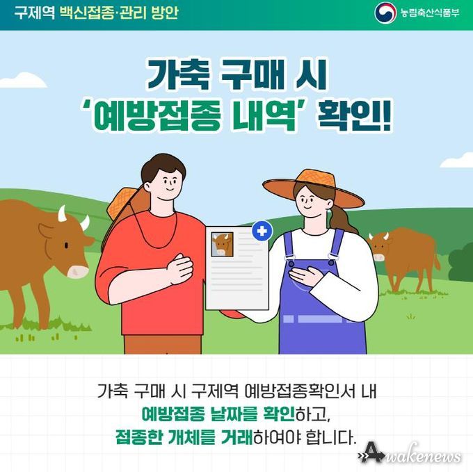 어웨이크뉴스 오경하 기자 | 파주시는 오는 9월 1일부터 30일까지 한 달간 하반기 구제역 예방 백신 일제접종을 실시한다고 밝혔다.