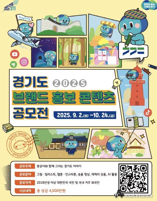 어웨이크뉴스 오경하 기자 | 경기도가 도 캐릭터 ‘봉공이’를 활용한 창의적인 홍보 콘텐츠 발굴을 위해 ‘2025년 경기도 브랜드 홍보 콘텐츠 공모전’을 개최한다고 2일 발표했다. 참가작 접수는 10월 24일까지다.