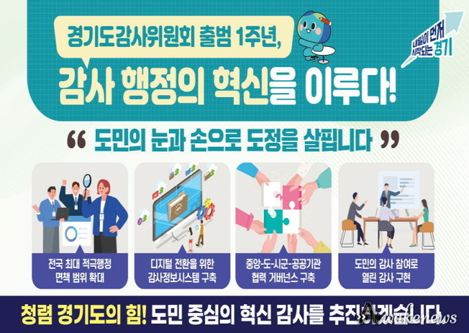 경기도 감사위원회에 따르면 독임제 행정기관인 감사관을 독립적인 합의제 행정기관인 감사위원회와 도민권익위원회로 개편해 2024년 9월 2일 경기도 감사위원회를 출범한 바 있다. 감사위원회의 출범 후 1년의 성과를 ▲혁신 ▲협력 ▲청렴 ▲열린 감사 등으로 크게 나눠 살펴본다.