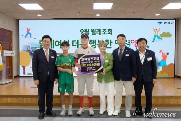 어웨이크뉴스 오경하 기자 | 양평군은 지난 3일 군청 대회의실에서 열린 월례조회에서 장서윤, 원종환 매력양평 군수가 단월중학교 운동부를 위해 500만 원을 지정 기탁했다고 밝혔다.