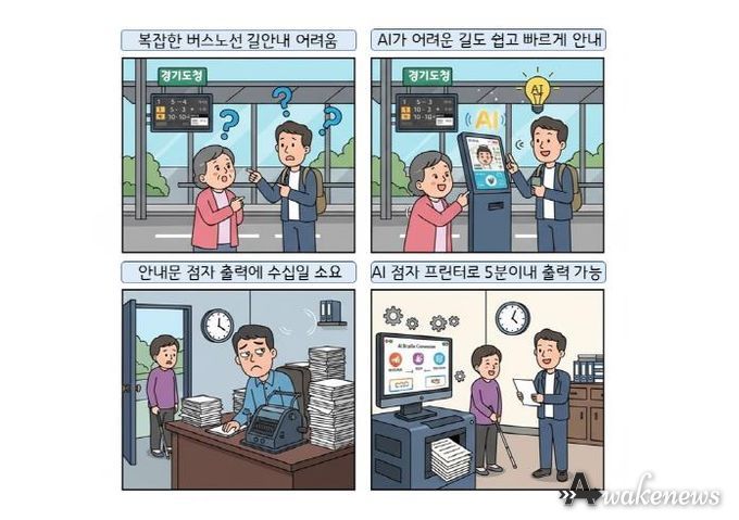 어웨이크뉴스 오경하 기자 | AI 키오스크가 실시간 교통 상황을 분석해 최적 경로와 환승 정보를 음성으로 안내하고, 수개월 걸리던 문서 분석-점자 번역-출력 과정을 단 5분 만에 가능하게 하는 AI 점자프린터 기술이 경기도에서 실증된다.