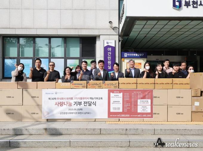어웨이크뉴스 오경하 기자 | 부천시는 지난 25일 삼정동에 소재한 무선통신 제조기업 ㈜와치캠을 비롯한 7개 업체가 삼정종합사회복지관 내 ‘온(溫)편의점’에 후원물품을 기탁했다고 밝혔다. 이번 후원은 추석 연휴를 맞아 복지 사각지대 시민들을 위한 마음 돌봄 공간 운영을 지원하기 위해 마련됐다.
