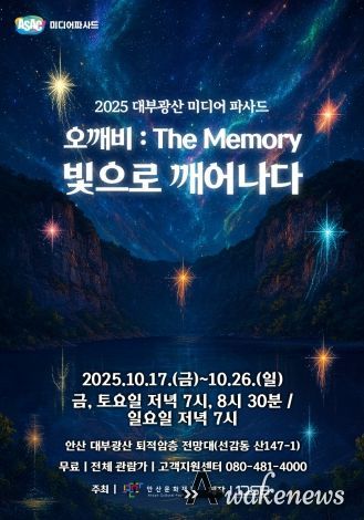 어웨이크뉴스 오경하 기자 | 안산문화재단이 오는 10월 17일부터 26일까지 매주 금·토·일 총 6일간 안산 대부광산 퇴적암층 전망대에서 특별한 야외 공연 ‘오깨비 : The Memory, 빛으로 깨어나다’를 선보인다. 이번 공연은 매주 금요일·토요일 오후 7시와 8시 30분, 일요일 오후 7시에 진행되며, 모든 프로그램은 무료로 관람할 수 있다.