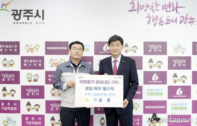 어웨이크뉴스 오경하 기자 | 광주시는 지난 26일 채드윅송도국제학교 12학년 나지안 학생과 ㈜일월 이광모 대표가 추석을 맞아 취약계층을 위한 이웃돕기 성금과 현물을 기탁했다고 29일 밝혔다.