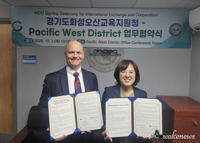 어웨이크뉴스 오경하 기자 | 화성오산교육지원청은 10월 2일 미국방부교육청 대회의실에서 미국 Pacific West District와 국제교류협력 업무협약(MOU)을 맺고, 학생 맞춤형 글로벌 교육 프로그램을 본격적으로 추진한다.