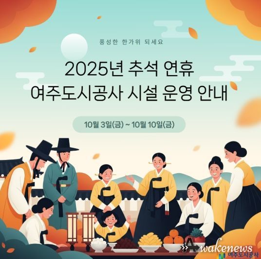 어웨이크뉴스 오경하 기자 | 여주도시공사는 2025년 추석 명절을 맞아 고향을 찾는 귀성객과 시민들의 편의를 위해 주요 시설 운영시간 조정, 무료개방 등 특별 서비스를 제공한다고 2일 밝혔다.