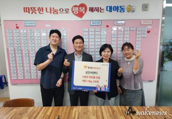 한성운 ㈜성진씨앤티 대표는 “대야동의 한 기업으로서 지역사회에 도움이 되고 싶어 기부를 결심했다”라며 “이번에 전달된 쌀이 추석을 앞두고 어려운 이웃들에게 작은 힘이 되길 바란다”라고 말했다.