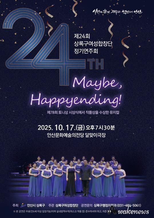어웨이크뉴스 오경하 기자 | 안산시 상록구는 오는 17일 오후 안산문화예술의전당 달맞이극장에서 ‘제24회 상록구여성합창단 정기연주회’를 개최한다고 13일 밝혔다.
