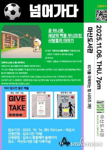 어웨이크뉴스 오경하 기자 | 마산도서관은 오는 11월 6일 19시, 본관 3층 다목적실에서 ‘공 하나로 세상의 벽을 무너뜨린 사람들의 이야기’ 프로그램을 운영한다고 밝혔다.