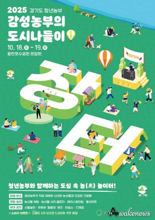 어웨이크뉴스 오경하 기자 | 경기도농업기술원은 오는 18, 19일 이틀간 화성시 동탄호수공원 운답원에서 청년농부와 도시민이 함께 소통하는 청년농업인 장터 ‘감성농부의 도시나들이’를 개최한다.