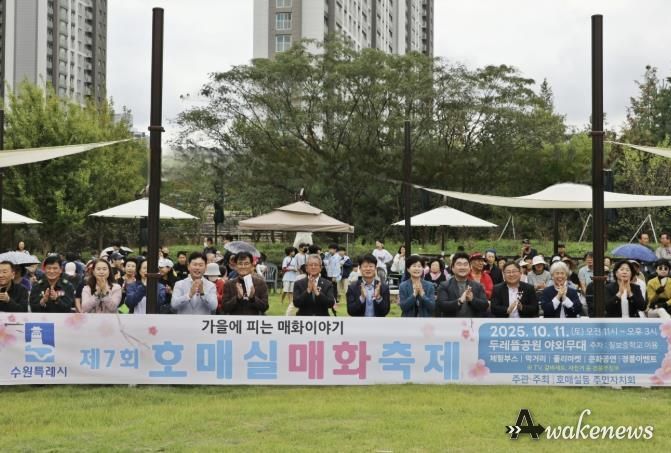 어웨이크뉴스 오경하 기자 | 수원시 권선구 호매실동 주민자치회는 지난 11일, 두레뜰공원 야외무대에서 주민 1,000여 명이 참여한 가운데 '제7회 호매실 매화축제'를 성황리에 마쳤다.
