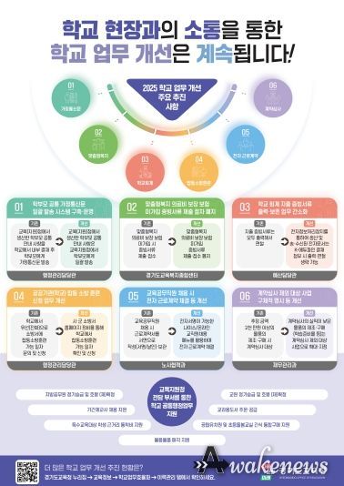 어웨이크뉴스 오경하 기자 | 경기도교육청이 ‘2025년 학교업무개선 성과 공유회’ 운영으로 도교육청-학교-교육지원청의 긴밀한 소통에 힘쓴다. 학교 업무 경감 및 효율화 사업의 체감도를 높이고, 2026년의 정책 방향을 설정하기 위해 마련한 자리다.