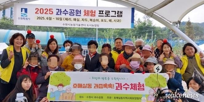 어웨이크뉴스 오경하 기자 | 수원시 권선구 호매실동 지역사회보장협의체는 지난 20일, 저소득 홀몸 어르신들을 모시고 과수 체험(사과 따기)에 나섰다. 이번 행사는 관내 홀몸 어르신들의 우울감 등을 예방하고 사회적 관계망을 만들기 위해 진행됐다.