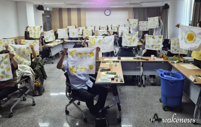 이번 교육은 직장인들의 환경 문제에 대한 이해를 높이고, 일상에서 실천할 수 있는 친환경 활동을 체험해 보는 데 목적을 두고 진행됐다. 천연염색에 대한 강의를 시작으로, 허브 스머지스틱 만들기, 보자기 염색 체험 등 다양한 실습 프로그램이 운영됐다.