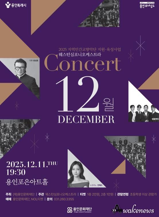 어웨이크뉴스 오경하 기자 | 용인문화재단은 오는 12월 11일 오후 7시 30분, 용인포은아트홀에서 웨스턴심포니오케스트라 '콘서트 ‘12월’' 공연을 개최한다.