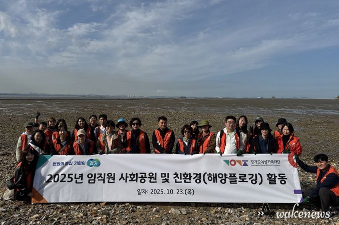 어웨이크뉴스 오경하 기자 | 경기도여성가족재단은 23일 화성시 고온항 및 궁평항 일대에서 임직원 36명이 참여한 가운데 ‘2025년 사회공헌 및 친환경 활동’(해양 플로깅)을 펼쳤다.