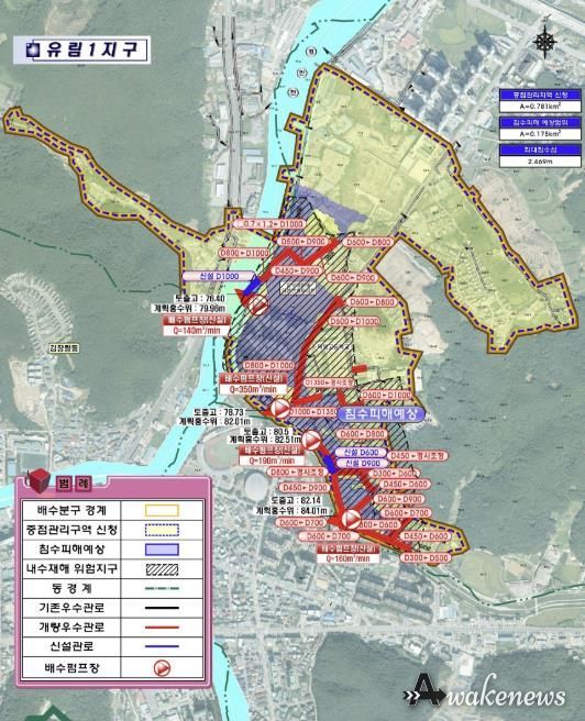 하수도정비 중점관리지역으로 지정된 ‘유림1지구 및 중앙지구’의 면적은 약 1.08㎢다. 이 지역은 하수관로의 통수 능력이 부족하고, 하천 수위가 상승할 경우 내수 배제가 어려운 지역으로 꼽혔다.