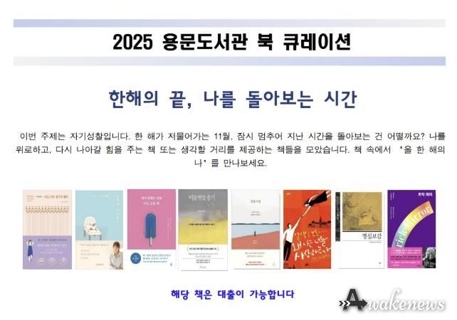 어웨이크뉴스 오경하 기자 | 양평군은 11월 1일부터 12월 31일까지 용문도서관에서 ‘한 해의 끝, 나를 돌아보는 시간’을 주제로 한 책 추천 서비스(북 큐레이션)를 운영한다고 밝혔다.