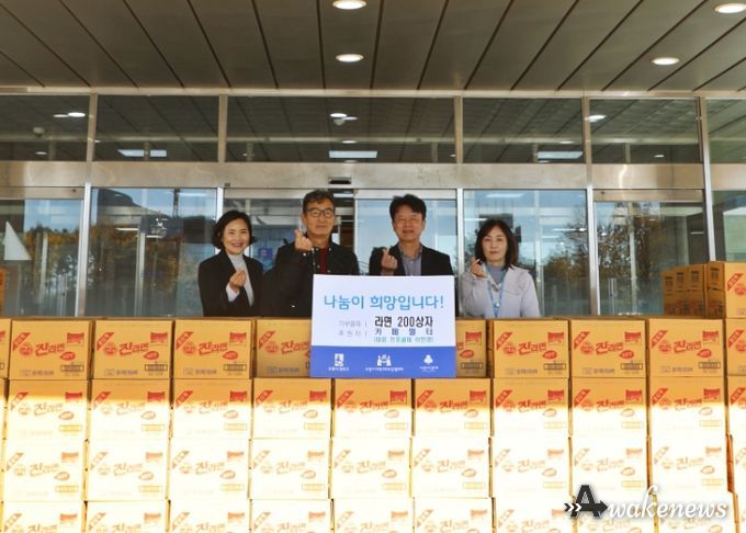 어웨이크뉴스 오경하 기자 | 수원시 권선구는 지난 10일, 관내 소재 카페벌터로부터 라면 200상자(460만원 상당)를 후원받았다고 밝혔다.