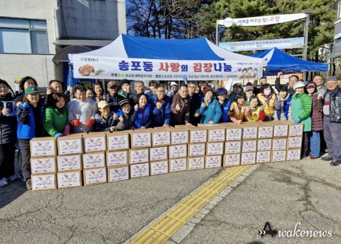 어웨이크뉴스 오경하 기자 | 고양특례시 일산서구 송포동 새마을부녀회는 지난 21일 송포동 행정복지센터 에서 ‘사랑의 김장나눔 전달식’을 진행했다고 밝혔다.