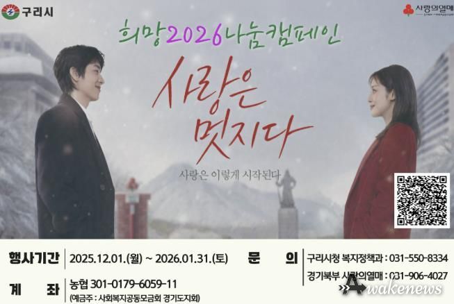 어웨이크뉴스 오경하 기자 | 구리시는 연말연시 소외계층을 돕기 위한 ‘희망 2026 나눔 캠페인’을 2025년 12월 1일부터 2026년 1월 31일까지 총 62일간 추진한다고 밝혔다.