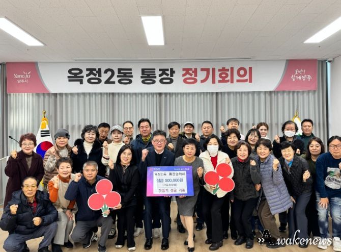 신동주 옥정2동장은 “어려운 이웃을 위해 정성을 모아준 통장협의회 여러분께 진심으로 감사드린다”며 “이번 성금은 도움이 필요한 가정에 투명하고 신속하게 전달해 올겨울 더 많은 분들이 따뜻함을 느낄 수 있도록 최선을 다하겠다”고 전했다.
