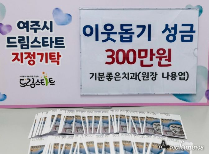 어웨이크뉴스 오경하 기자 | 기분좋은치과에서 지난 12월 1일 여주시드림스타트에 이웃돕기 성금 300만원(온누리상품권)을 기탁했다.