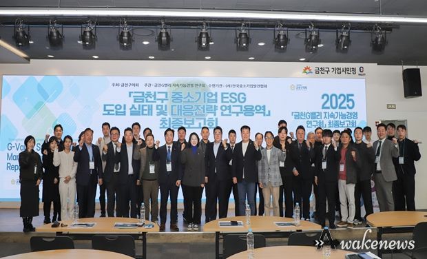 어웨이크뉴스 오경하 기자 | 서울특별시 금천구의회 의원연구단체인‘금천G밸리 지속가능경영 연구회’는 지난 12월 1일 금천G밸리 기업시민청에서 '금천구 중소기업 ESG 도입 실태 및 대응전략 연구용역' 최종보고회를 개최했다.