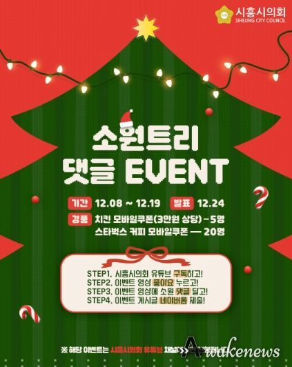 어웨이크뉴스 오경하 기자 | 경기 시흥시의회가 다가오는 성탄절을 맞아 시민들과 따뜻한 마음을 나누고 소통을 강화하기 위해 ‘소원트리 댓글 이벤트’를 진행한다.