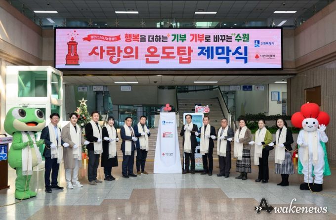 어웨이크뉴스 오경하 기자 | 수원특례시는 8일 시청 본관 로비에서 ‘사랑의 온도탑’ 제막식을 열고 ‘희망2026나눔캠페인’을 시작했다. 수원시는 ‘10억 원 모금’을 목표로 내년 1월 31일까지 사랑의 온도탑을 운영한다.