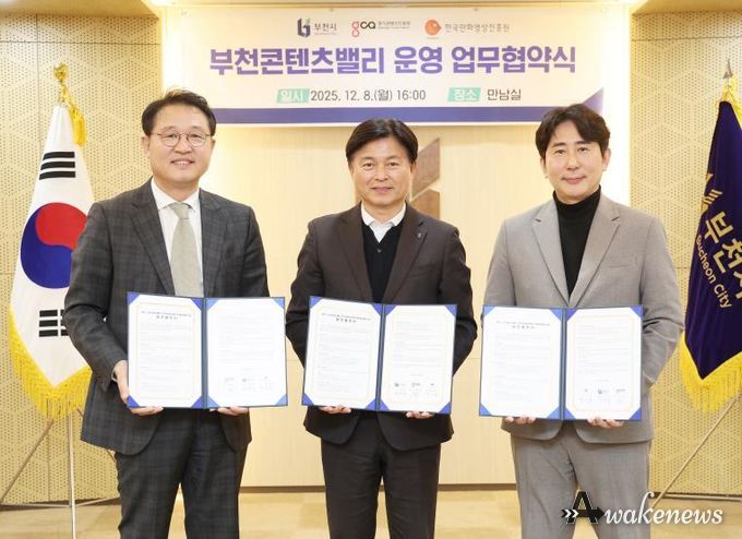어웨이크뉴스 오경하 기자 | 부천시는 지난 8일 시청 만남실에서 경기콘텐츠진흥원, 한국만화영상진흥원과 함께 ‘부천콘텐츠밸리’ 조성 사업의 성공적 추진을 위한 3자 간 업무협약(MOU)을 체결했다.