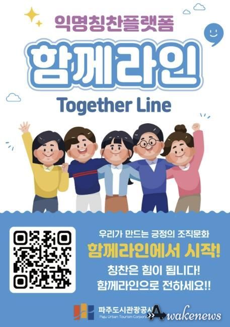 어웨이크뉴스 오경하 기자 | 파주도시관광공사는 직원과 고객이 함께 참여하는 스마트 익명 칭찬 플랫폼 ‘함께라인(Together Line)’을 12월 초부터 도입했다.