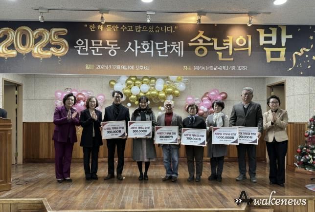 이날 송년회에서는 원문동 부녀회가 100만 원, 통장단·주민자치위원회·체육회가 각 30만 원, 지역사회보장협의체·새마을지도자협회가 각 20만 원을 기부해, 총 230만 원이 어려운 이웃을 돕는 데 사용되도록 원문동 지역사회보장협의체에 전달됐다.