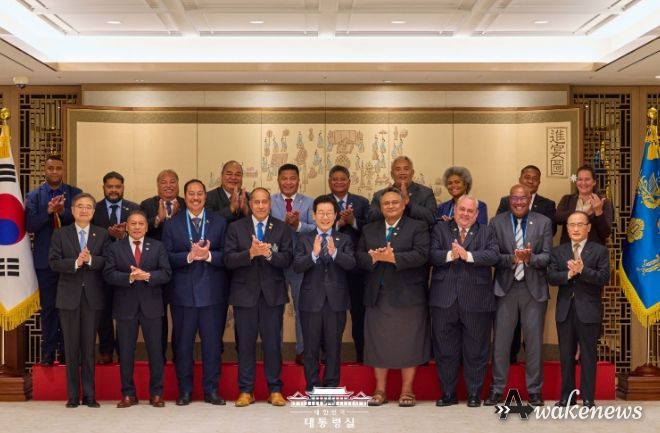 어웨이크뉴스 오경하 기자 | 이재명 대통령은 12월 10일 오전, 대통령실에서 제6차 한-태평양도서국 외교장관회의 참석을 위해 방한한 태평양도서국 외교장관 일행을 접견했다.