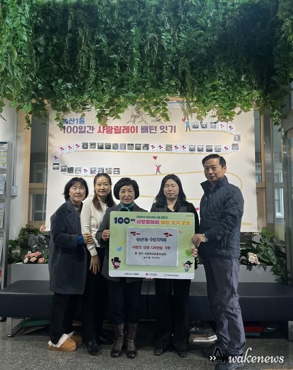 어웨이크뉴스 오경하 기자 | 의정부시 송산1동주민센터는 12월 11일 송산1동 주민자치회가 성금 120만 원을 기탁하며 ‘100일간 사랑릴레이 배턴 잇기’에 동참했다고 밝혔다.