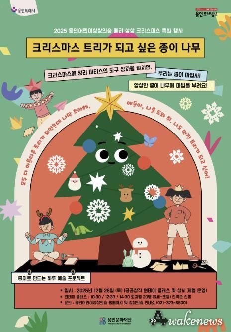 용인어린이상상의숲에서는 공공 창작 프로젝트 〈크리스마스트리가 되고 싶은 종이나무〉가 진행된다. 어린이들이 종이를 접고, 오리고, 붙이는 창작 활동을 통해 종이 나무를 함께 꾸며 하나의 크리스마스트리를 완성하는 참여형 프로그램으로, 아이들의 주체적인 참여를 통해 상상력과 표현력을 키우고 또래 친구들과 협력해 하나의 작품을 완성시키는 공동 창작의 즐거움도 경험할 수 있다.