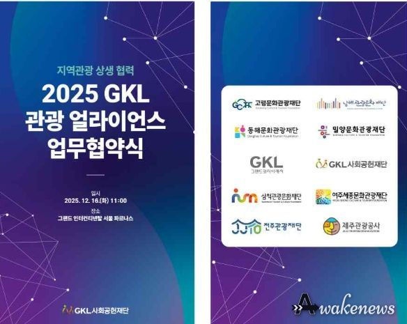 어웨이크뉴스 오경하 기자 | 여주세종문화관광재단은 지난 12월 16일 GKL 사회공헌재단이 주관한 ‘GKL 관광 얼라이언스 업무협약식’에 참석하여, 전국 8개 지역관광 전담기관과 함께 문화·관광 분야 공익사업 협력을 위한 업무협약을 체결했다고 밝혔다.