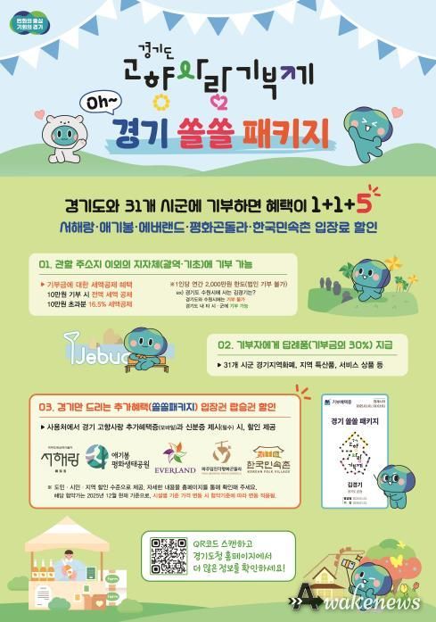 어웨이크뉴스 오경하 기자 | 경기도가 고향사랑기부제 참여 확대와 지역경제 활성화를 위해 기부자에게 에버랜드, 한국민속촌 등 주요 관광시설 이용 할인 혜택을 제공한다.