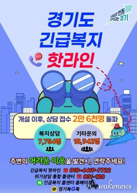 경기도가 2022년 8월부터 위기도민 발굴을 위해 ‘긴급복지 핫라인’을 운영한 결과 3년 3개월 만에 상담 접수 2만 6천 명을 넘어섰다.