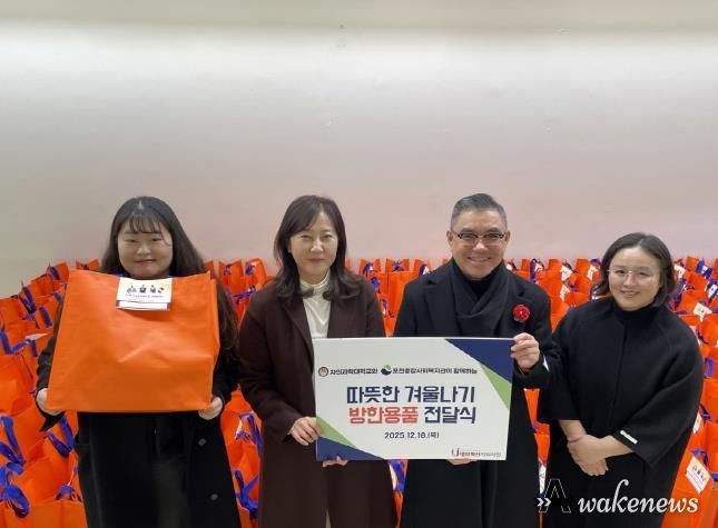 어웨이크뉴스 오경하 기자 | 포천시종합사회복지관과 차의과학대학교는 지난 18일 차의과학대학교 사회봉사센터에서 따뜻한 겨울나기를 위한 ‘2025년 사랑의 방한용품 나눔’ 전달식을 진행했다.