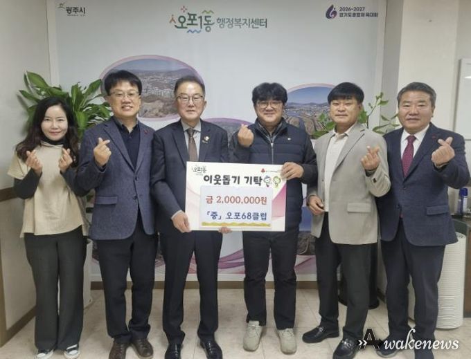 오포68클럽은 지역사랑 봉사 활동을 목적으로 오포 권역 내 1968년생을 주축으로 2004년 결성된 친목 단체다. 이번에 기탁된 성금은 오포 권역 4개 동(오포1·2동, 능평동, 신현동)의 취약계층을 지원하는 데 사용될 예정이다.