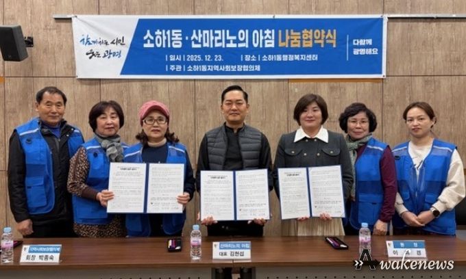 어웨이크뉴스 오경하 기자 | 광명시 소하1동 행정복지센터는 23일 소하1동 지역사회보장협의체, 산마리노의 아침과 함께 나눔 문화 확산을 위한 업무협약(MOU)을 체결했다.