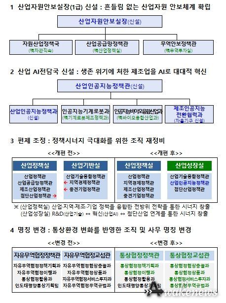 어웨이크뉴스 오경하 기자 | 산업통상부는 산업자원 안보실 및 산업인공지능정책관 신설 등 2013년(舊산업통상자원부 출범) 이후 최대 폭의 조직개편을 내용으로 하는 '산업통상부 직제 일부 개정령안'이 12월 23일 국무회의에서 의결됐으며, 12월 30일 시행될 예정이라고 밝혔다.